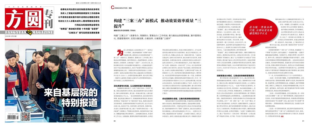 近日,《方圆》全文刊发我院文章《构建“三案三办”新模式 推动效果效率质量“三提升”》,介绍相关工作做法。